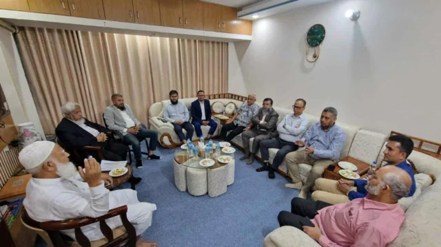 জামায়াত আমিরের সঙ্গে সৌজন্য সাক্ষাৎ করেছে দেশের শিল্প মালিকদের একটি প্রতিনিধি দল। ছবি: সংগৃহীত। বাংলাদেশ জামায়াতে ইসলামীর আমির ডা. শফিকুর